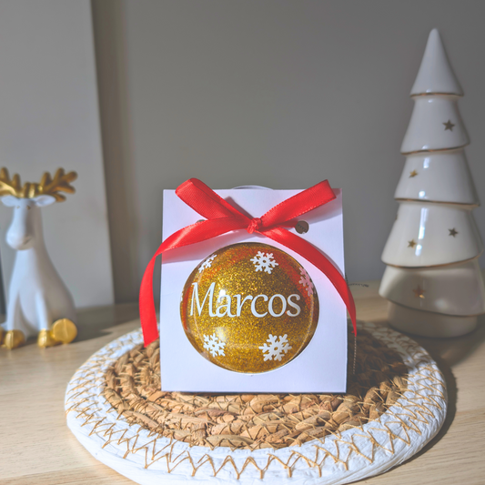 Bola de Navidad Personalizada de 8 cm con Árboles de Madera y Copos de Nieve