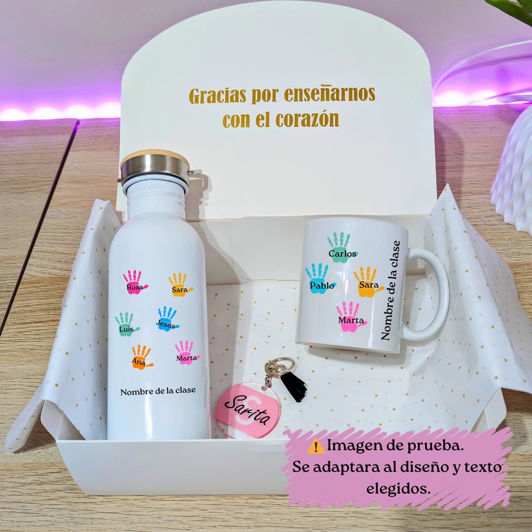 - Cajita blanca con texto dedicatoria a elegir, presentada con papel de seda y un cierre con lacito