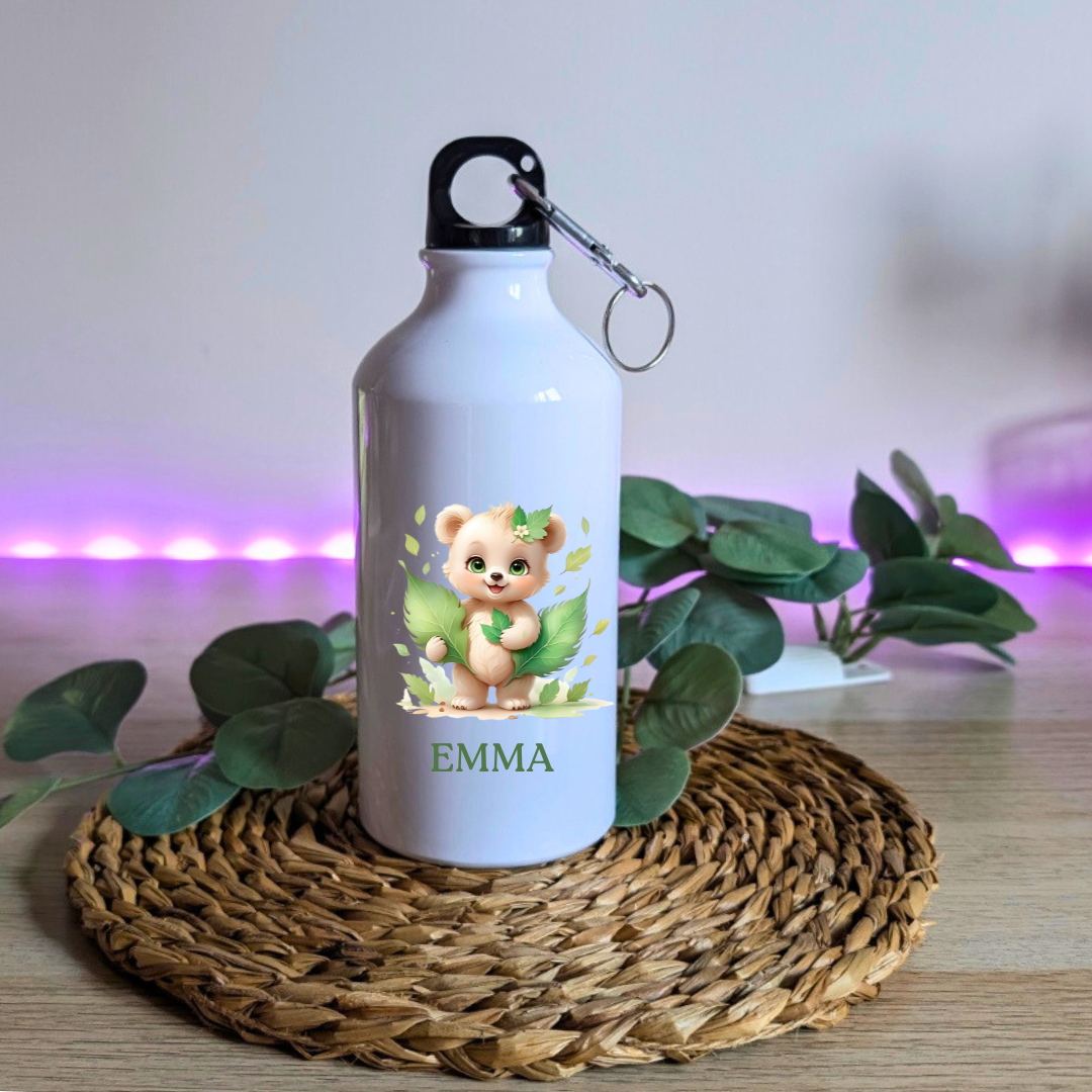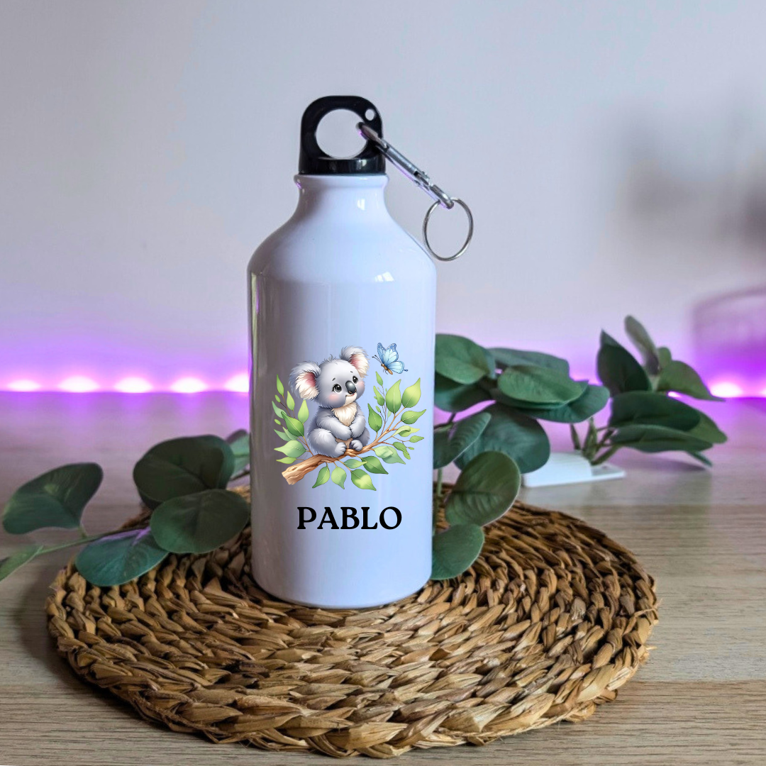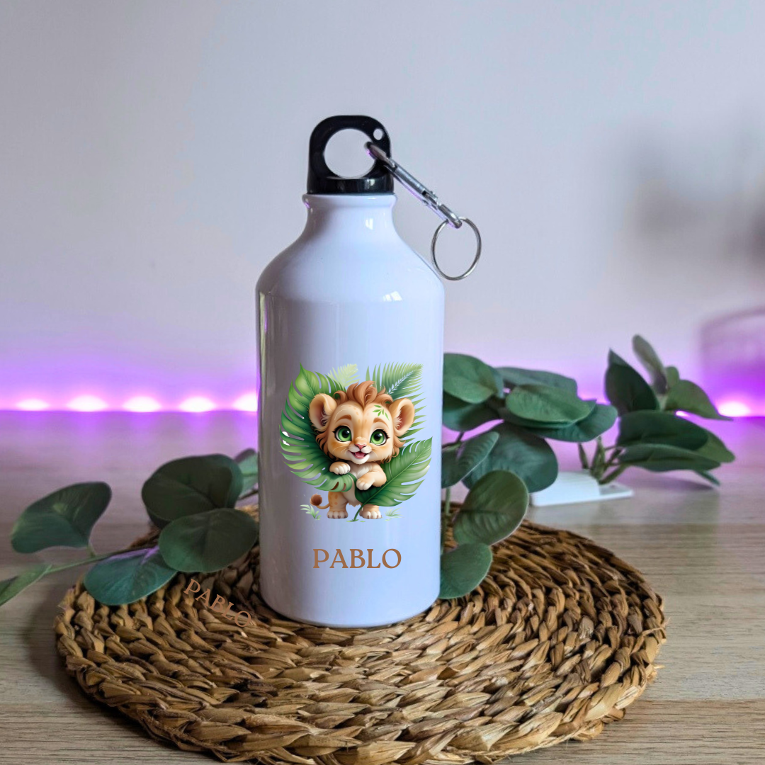 Botella de aluminio personalizada de 500 ml y dos tapones.