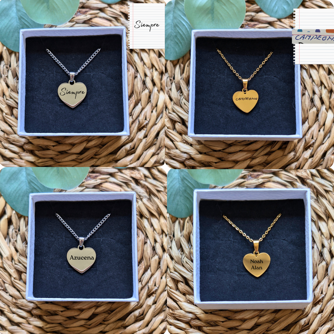 2. Colgante (a elegir entre grabado normal o manuscrito y dorado o plateado)