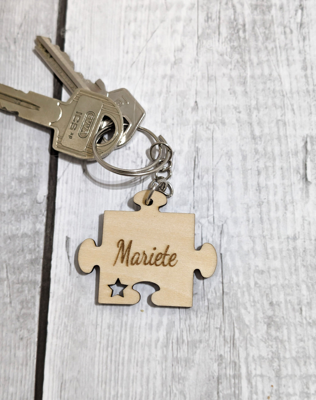 Personaliza tu llavero con este original y único Llavero Puzzle con nombre. Hecho de madera, puedes poner cualquier nombre o palabra que desees para hacerlo aún más especial. ¡Perfecto para regalar o para tener tu propio estilo!