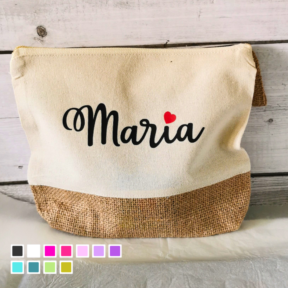 Este neceser de gran capacidad de algodón y yute es ideal para guardar tus productos de belleza y viajar con estilo. Personalízalo con el nombre que prefieras. ¡Encuentra el color que más te guste y haz un regalo perfecto y práctico para ti o para esa persona especial!